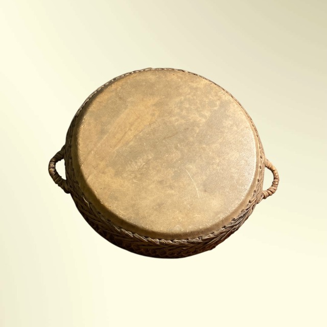 古い天然素材の太鼓。 中東やアフリカ地域のものかと思います。 プリミティブなインテリアやオブジェとしてもオススメです。 【サイズ(約/cm)】 直径24 高さ16 【コンディション】 古い物ですのでご理解いただける方のご購入お願いします。 気になる大きなダメージはありません。 お気軽にお問合せ、ご購入お願いします。