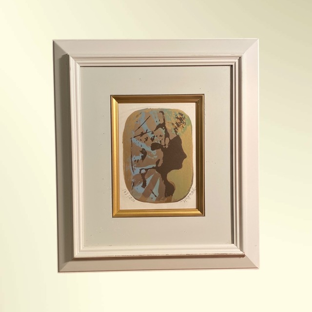 永瀬義郎作の『初恋』アート額装品。 エディションナンバーは155/200、右下に作者名が入ります。 コーヒーテーブルやダイニングにも置けるサイズ感。 インテリアやお店の雰囲気作りにもってこいです。 【サイズ(約/cm)】 額含む最大値 横幅25 高さ28 【コンディション】 大きなダメージや汚れのない美品です。 お気軽にお問合せ、ご購入お願いします。