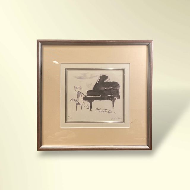 雨田光弘作のピアノを弾く猫のアート額装品。 95/200のエディションナンバー入りです。 脚が届いていない猫が可愛らしいです。 猫好き必見です! 【サイズ(約/cm)】 額含む最大値での計測 高さ35 横幅36.5 【コンディション】 アクリルに傷があります。 絵は大きなダメージや汚れのない美品です。 お気軽にお問合せ、ご購入お願いします。