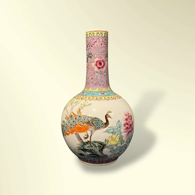 中国景徳鎮 粉彩花鳥文花器 フラワーベース コレクション