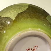 銀箔を張り付けた上に透明釉や五彩の釉彩を塗り、焼き上げる釉裏銀彩技法。