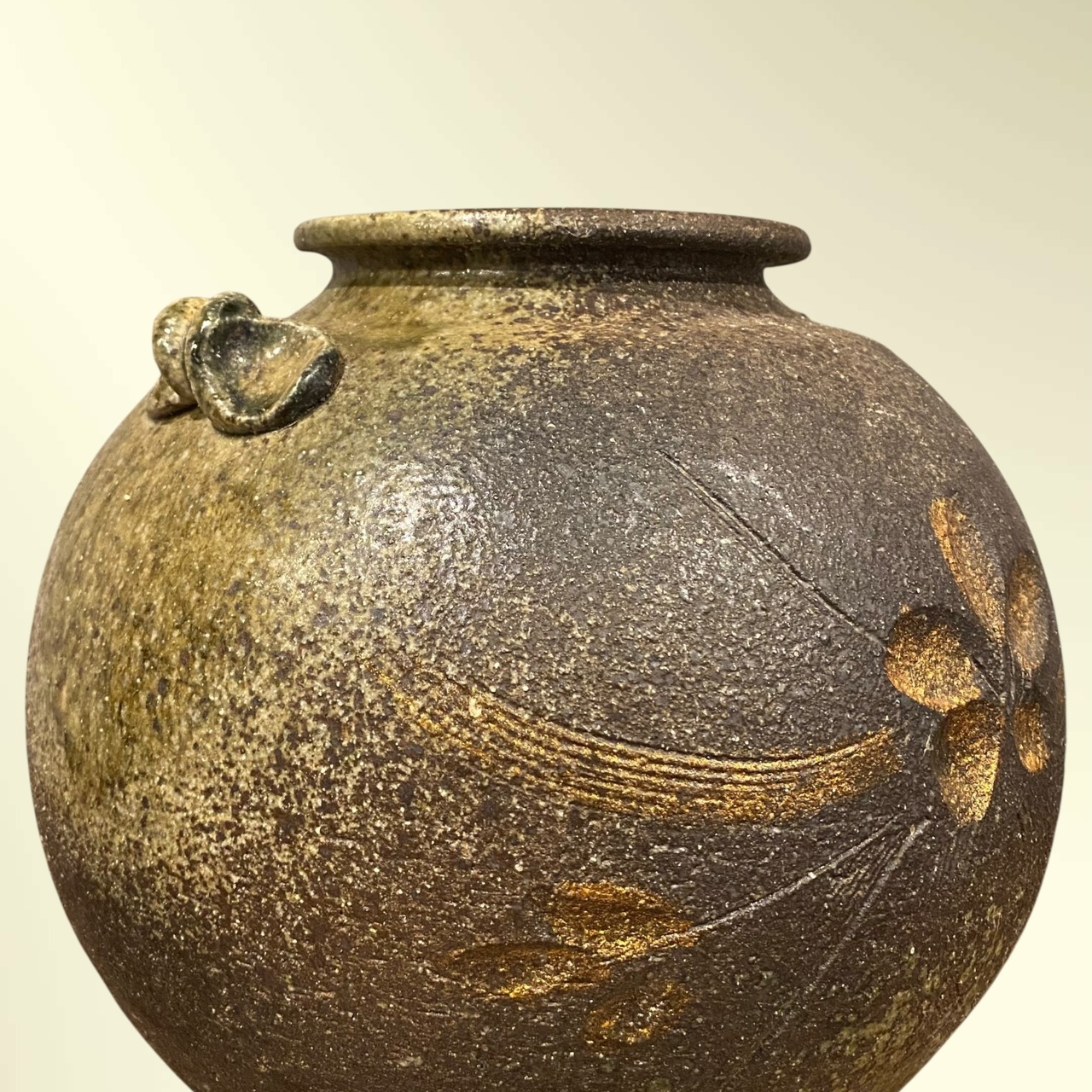 信楽焼の丸型花器。