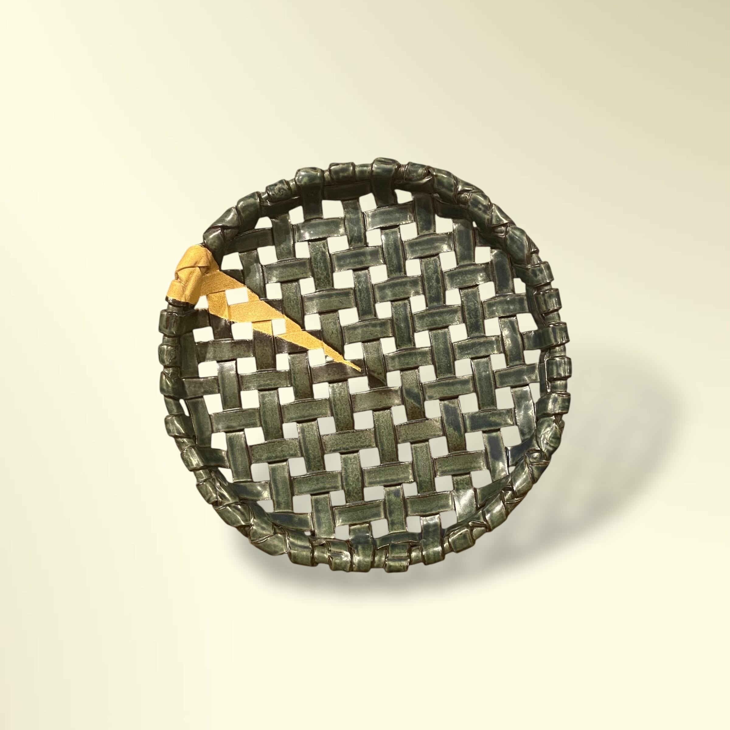 緑彩釉手編 大籠