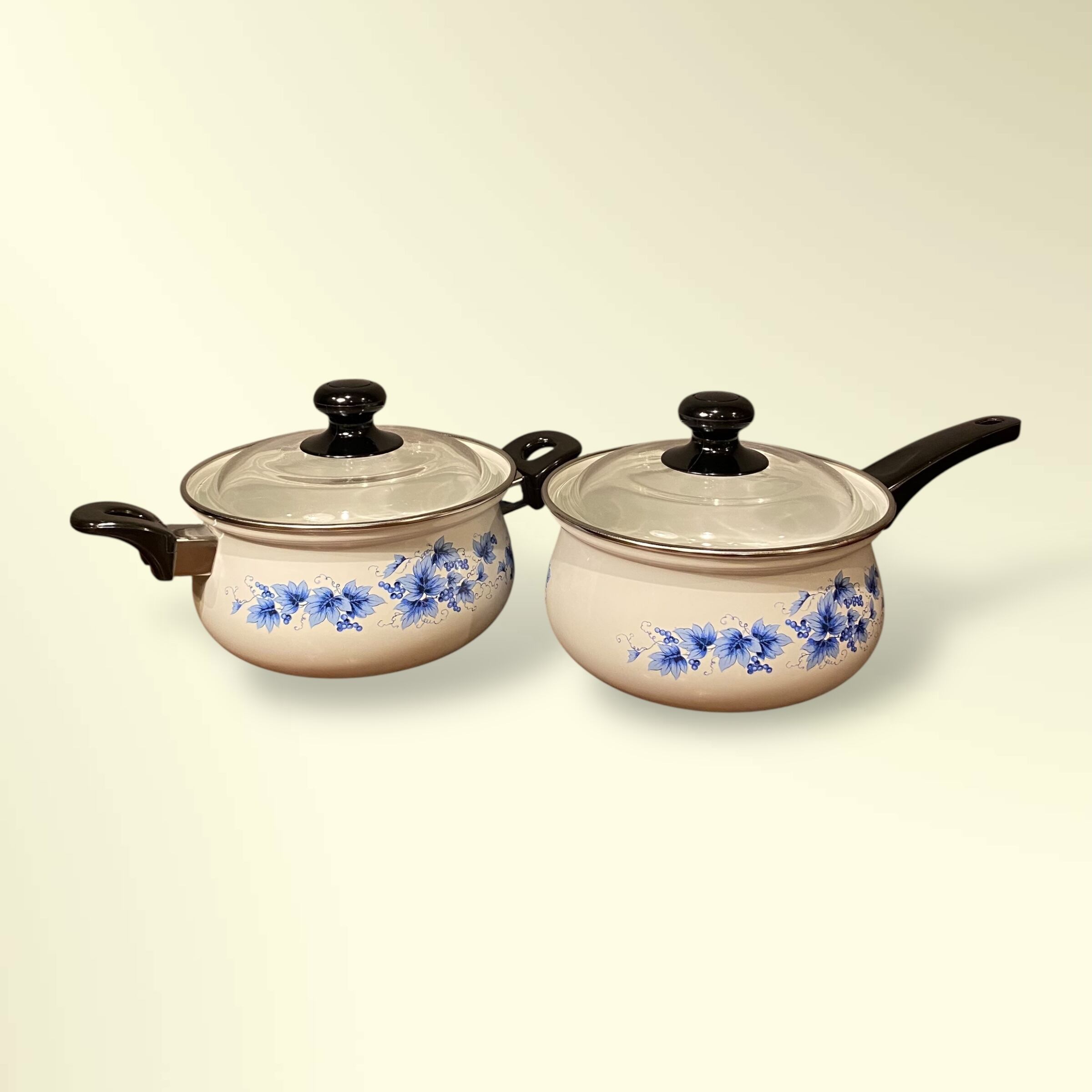 昭和レトロな江尻ホーロー社製のホーロー鍋二点セット。
