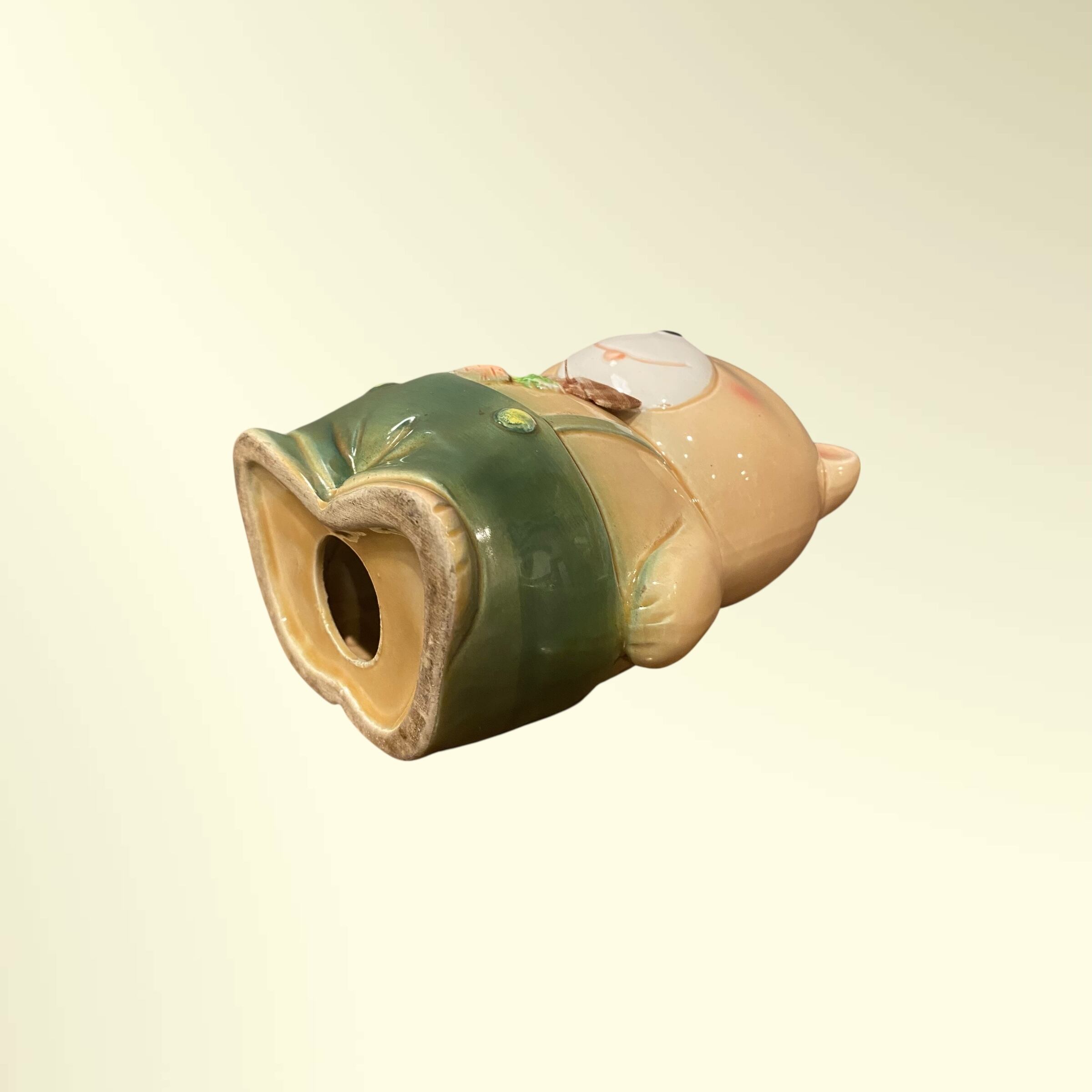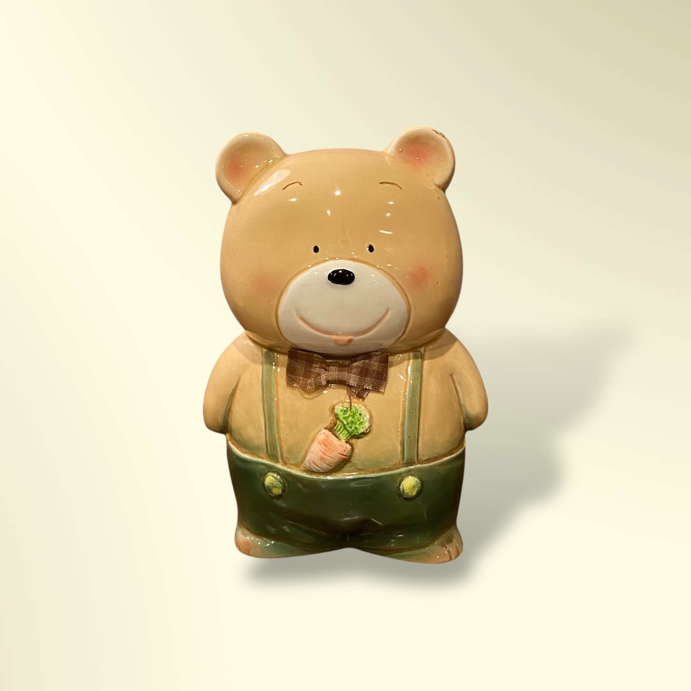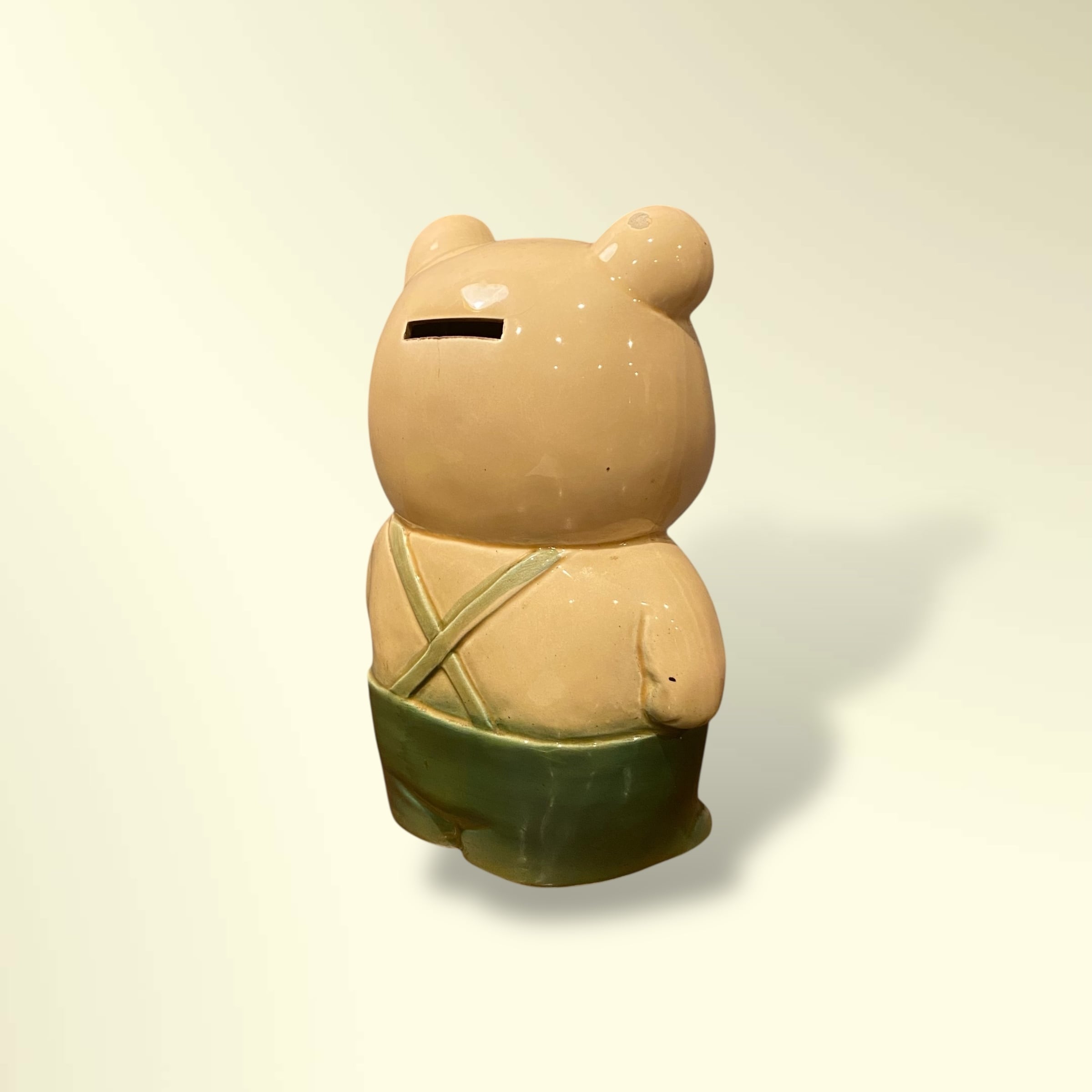 昭和レトロなクマの陶器製貯金箱。