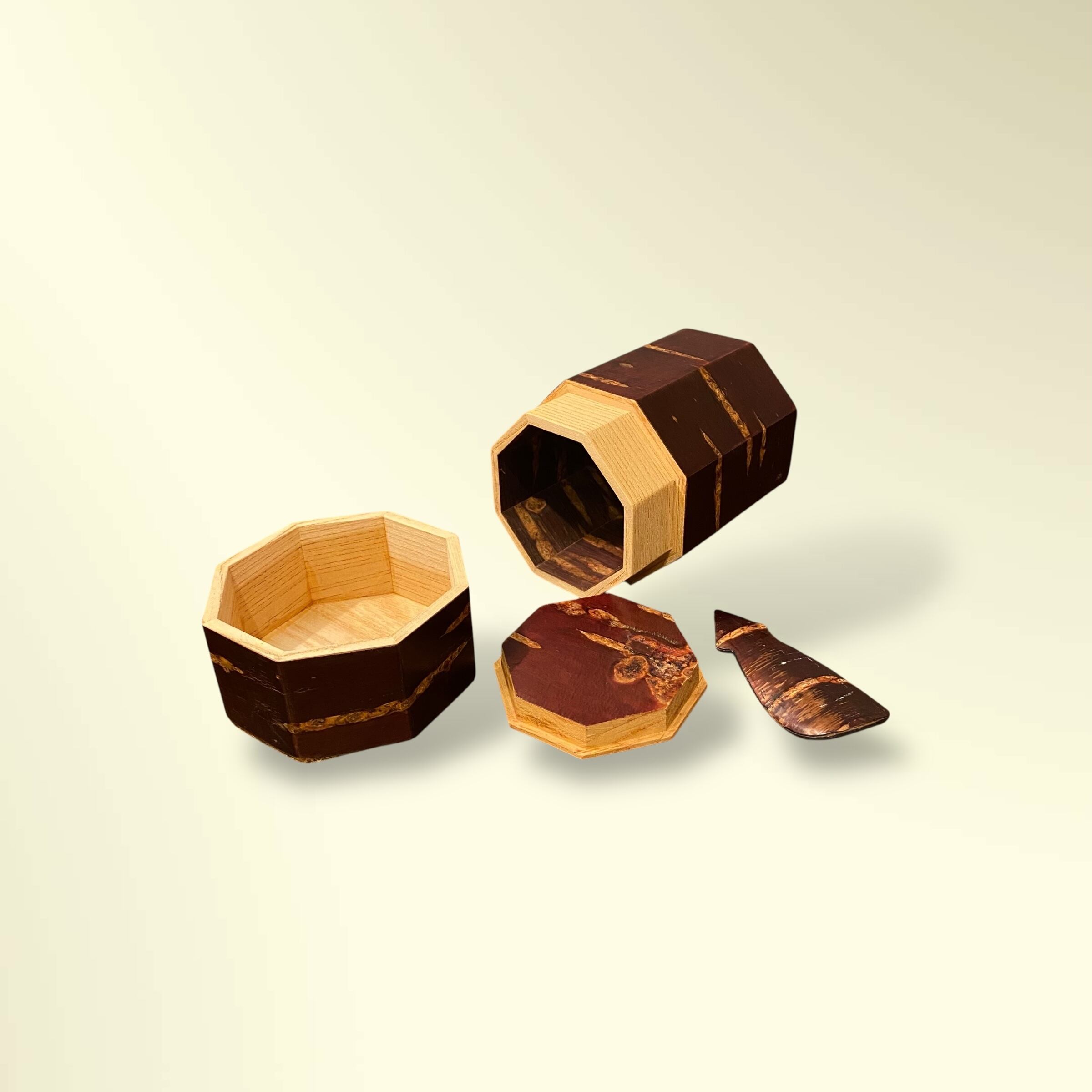 秋田県の伝統工芸品桜皮細工の茶筒。