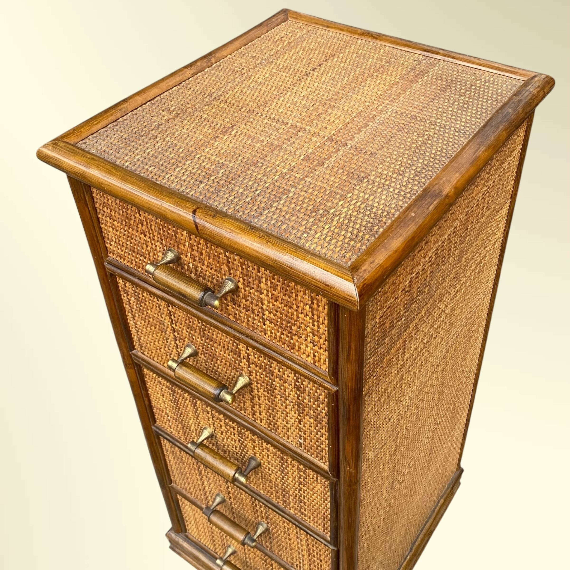 古いラタンの五段チェスト。