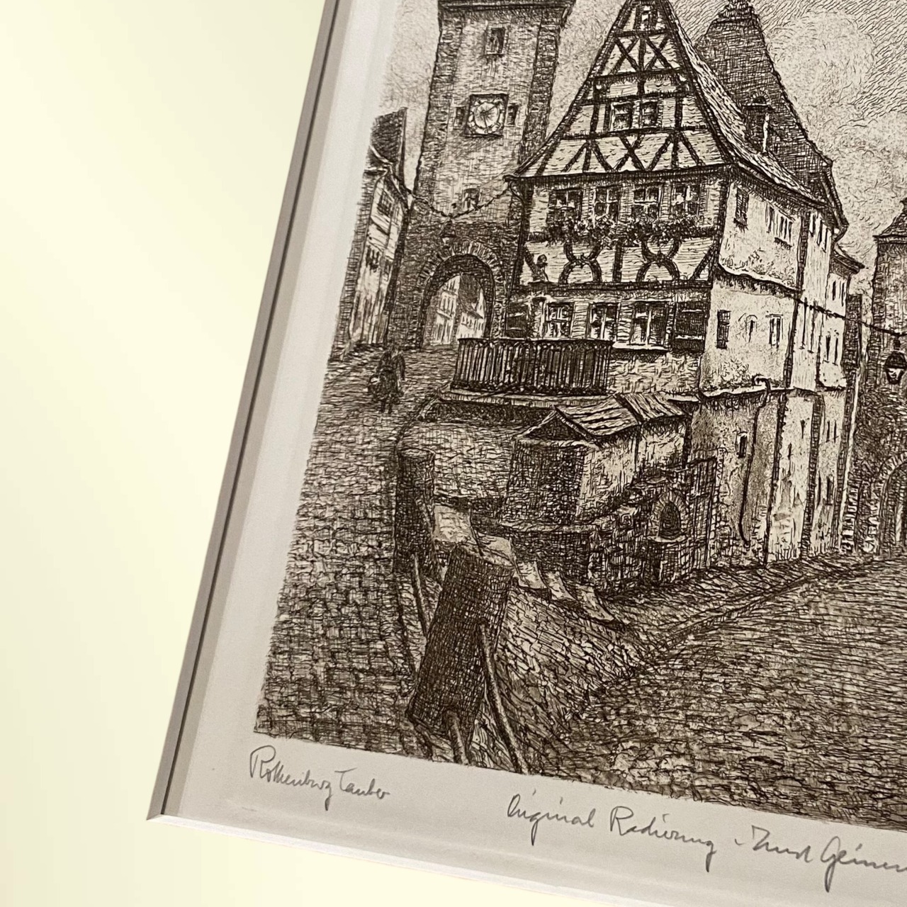 版画の左下には「Rothenburg Tauber」、右下には「Original Radierung Hans Gemmendorff」のサインが入ります。