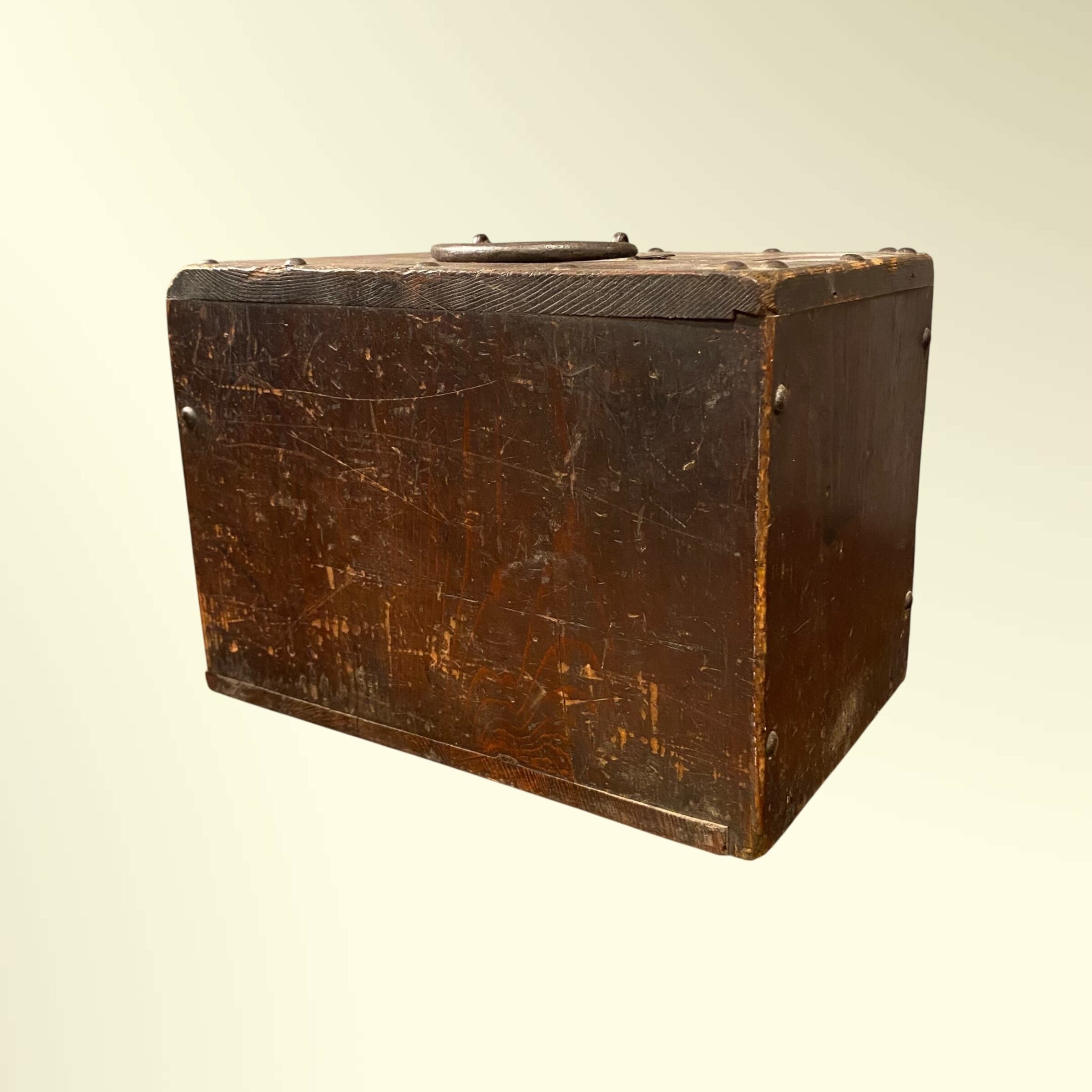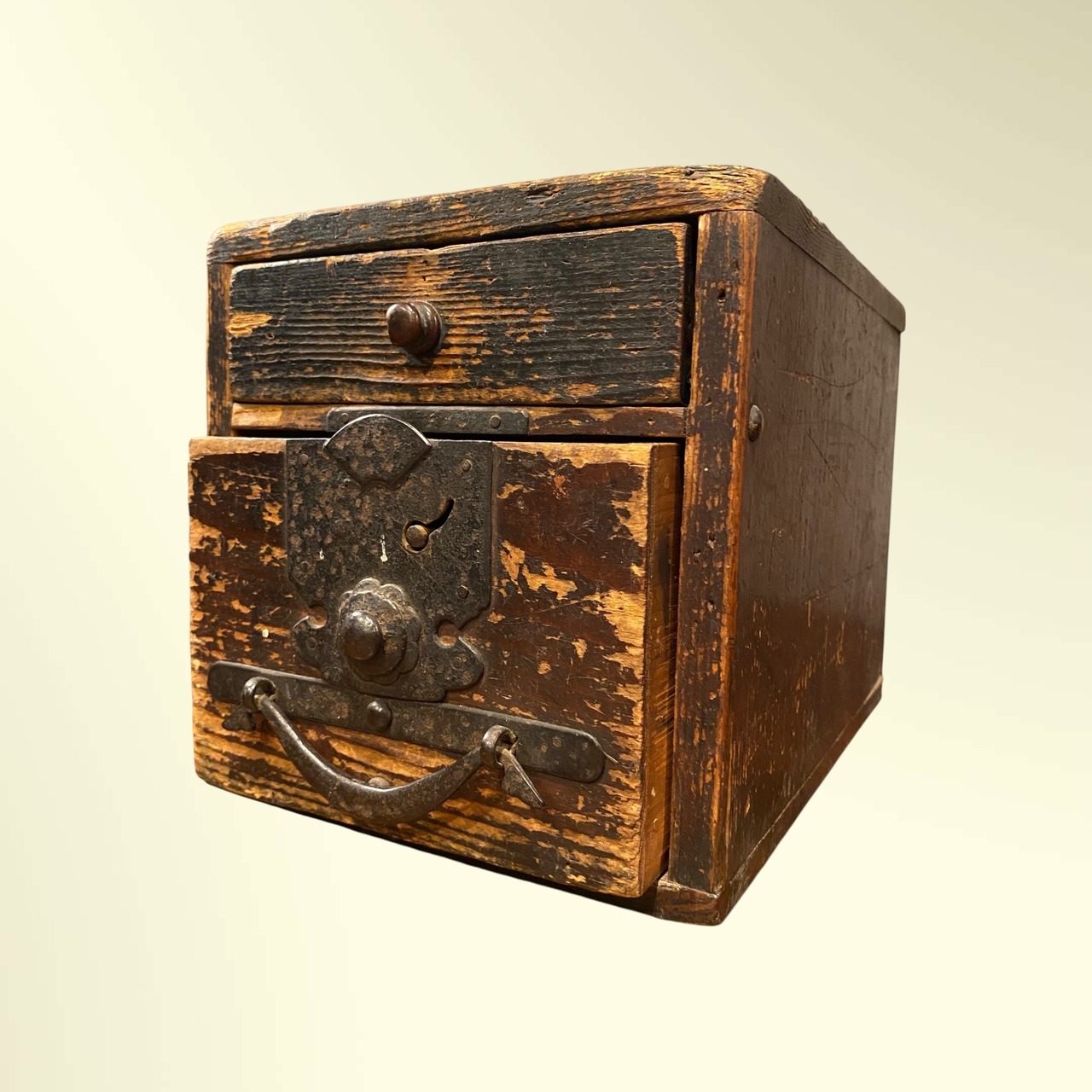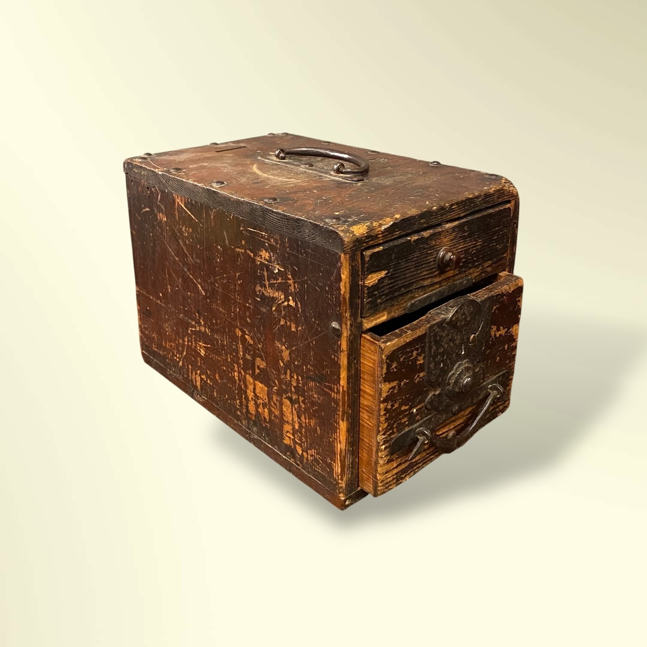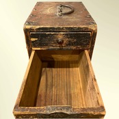 硯箱として使われていた物ですので内側は墨黒くなっていて雰囲気を高めています。