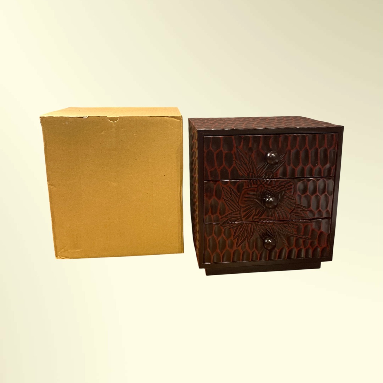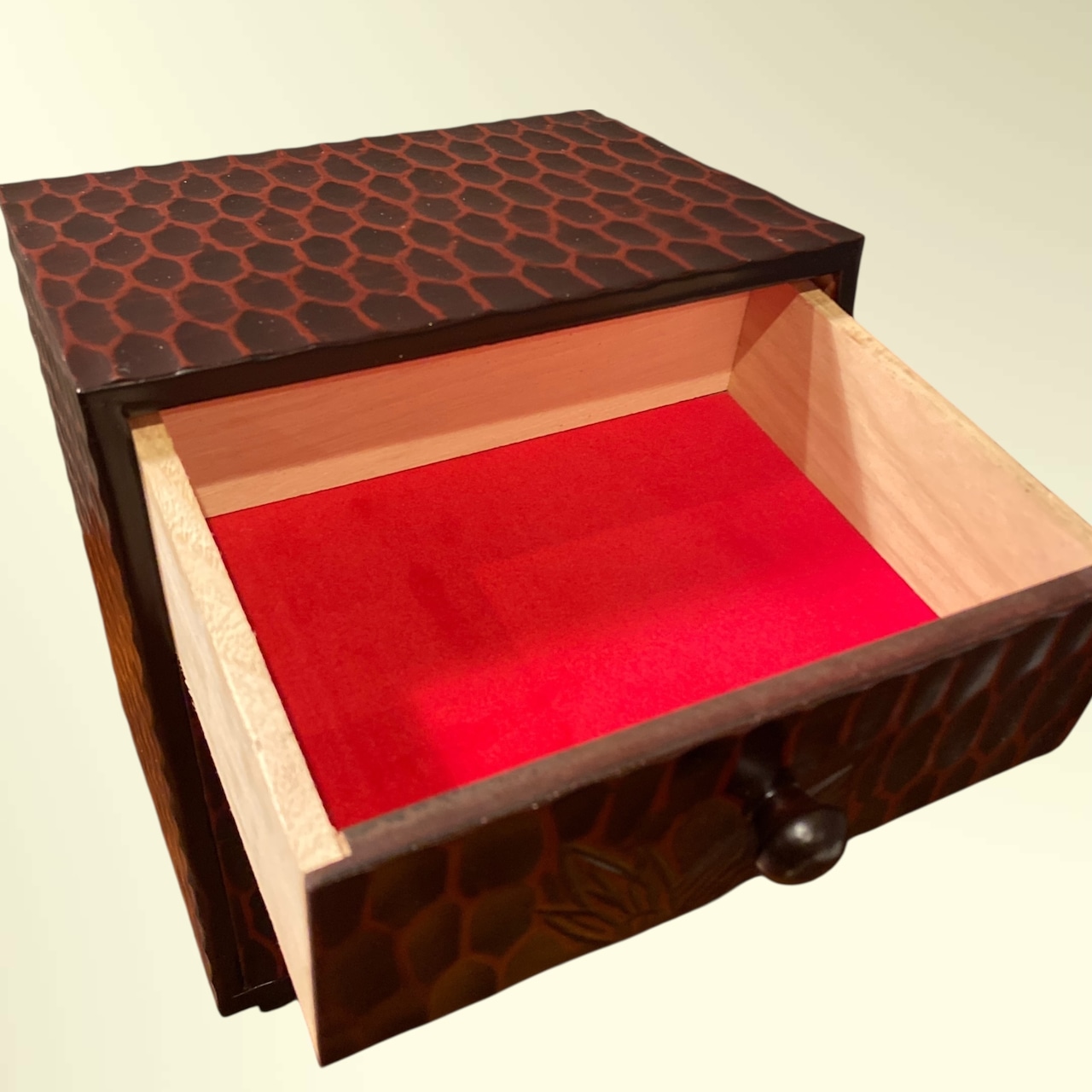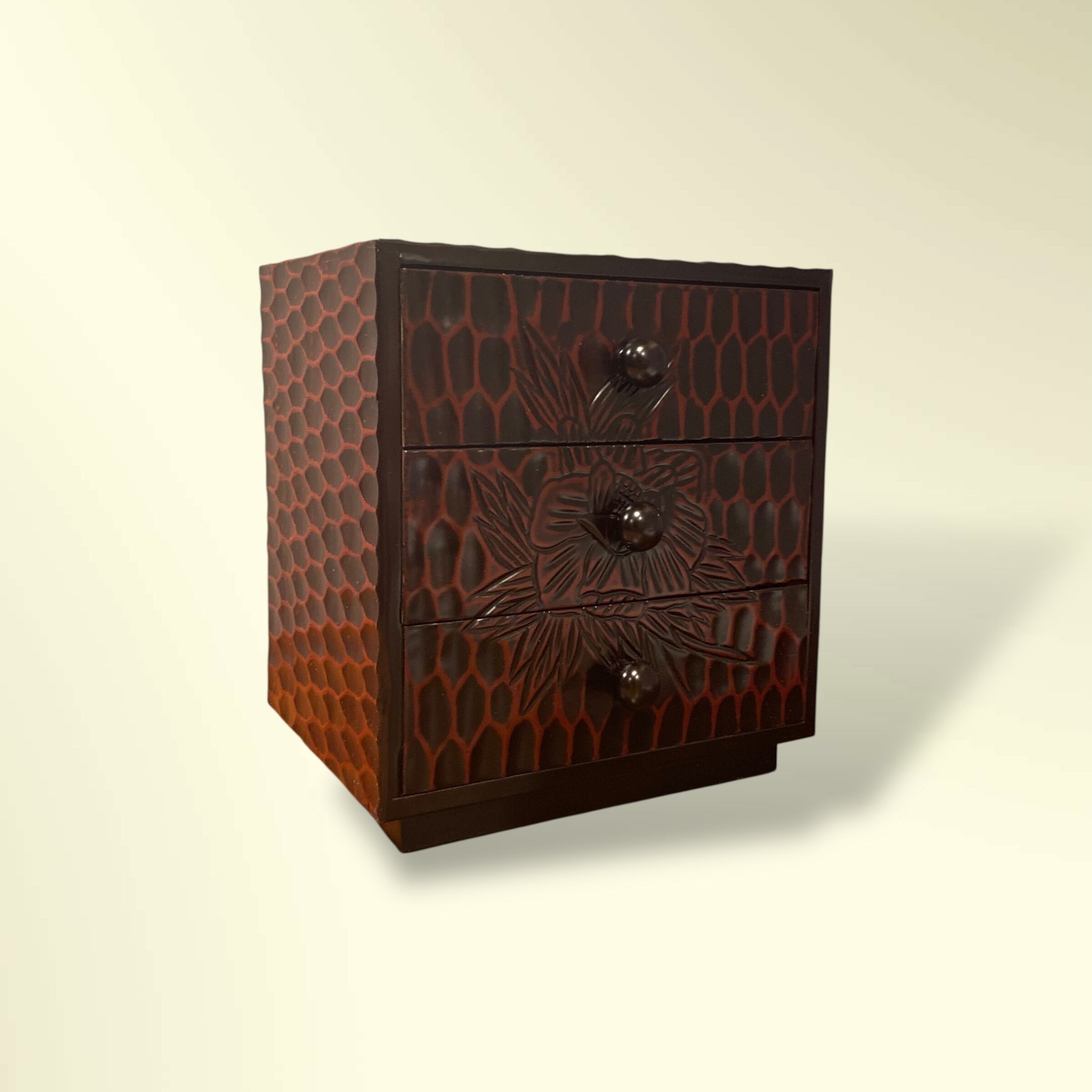 昭和レトロな雰囲気の鎌倉彫の小引き出し。