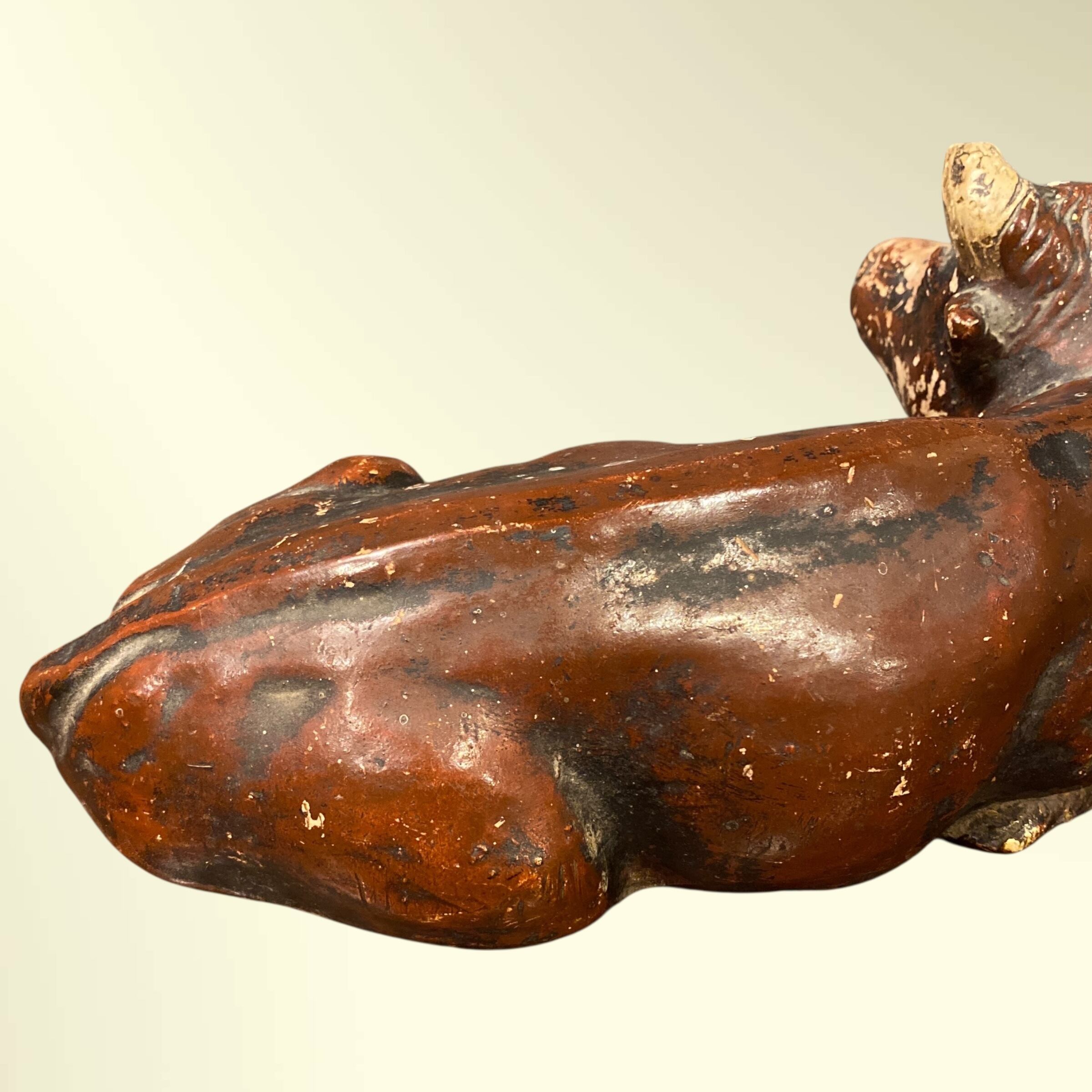 古い牛の陶器製置物。