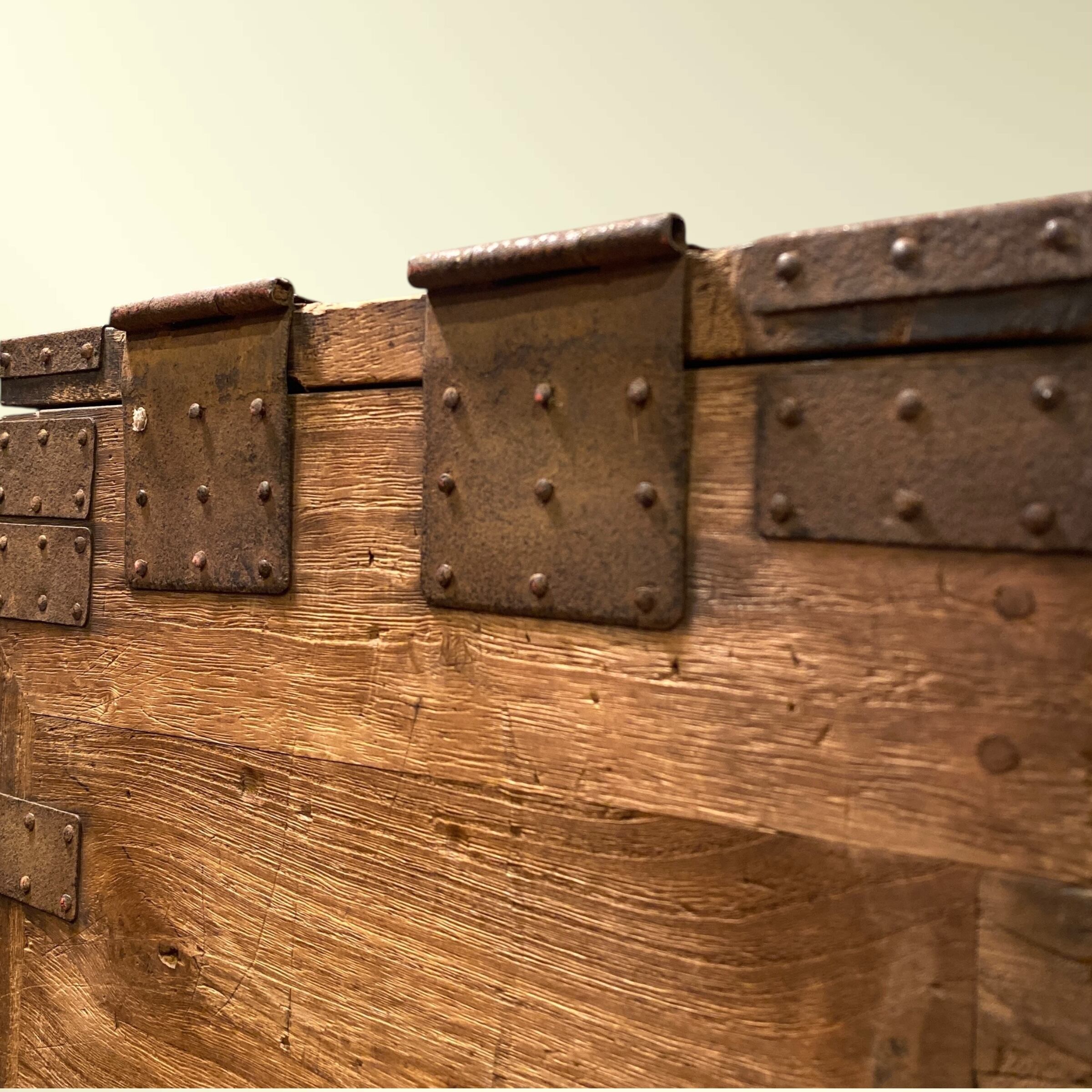 打ち付けられた金具や墨の試し塗りが良い味を出しています。