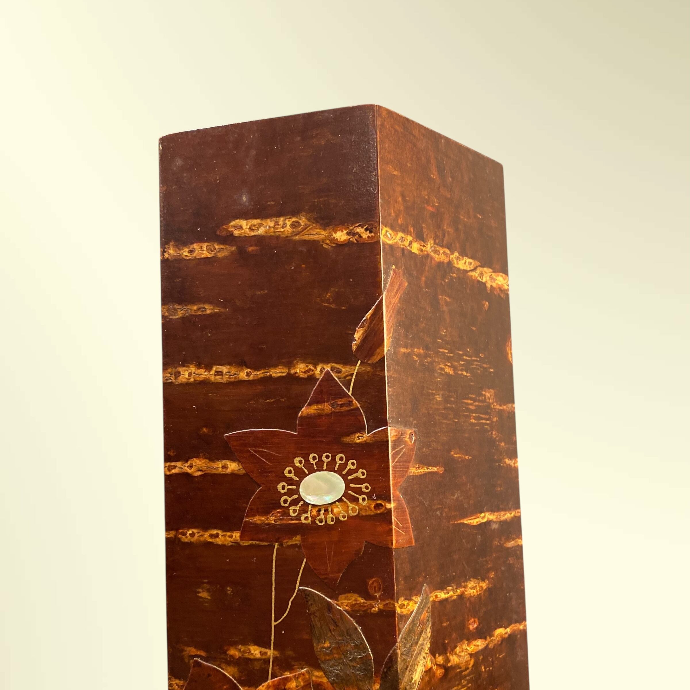 秋田県角舘の伝統工芸 桜皮細工の六角花入。