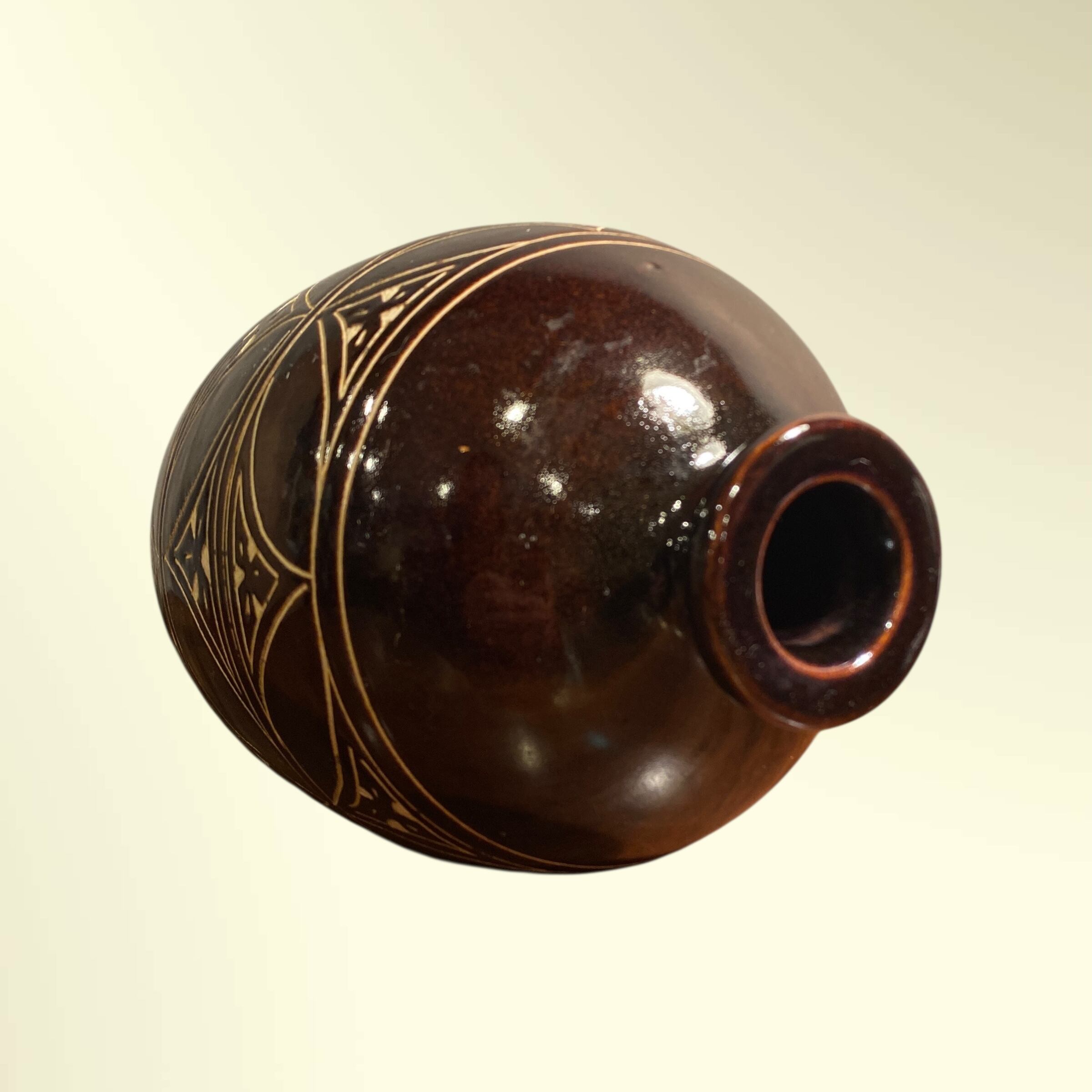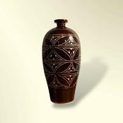 中国 磁州窯の黒釉飾り壺。